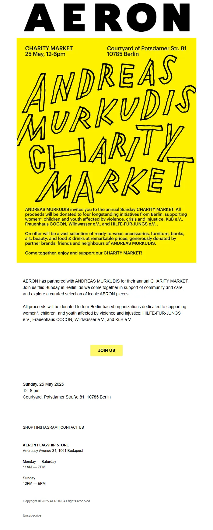 Charity Event Invitation – AERON at Andreas Murkudis Charity Market