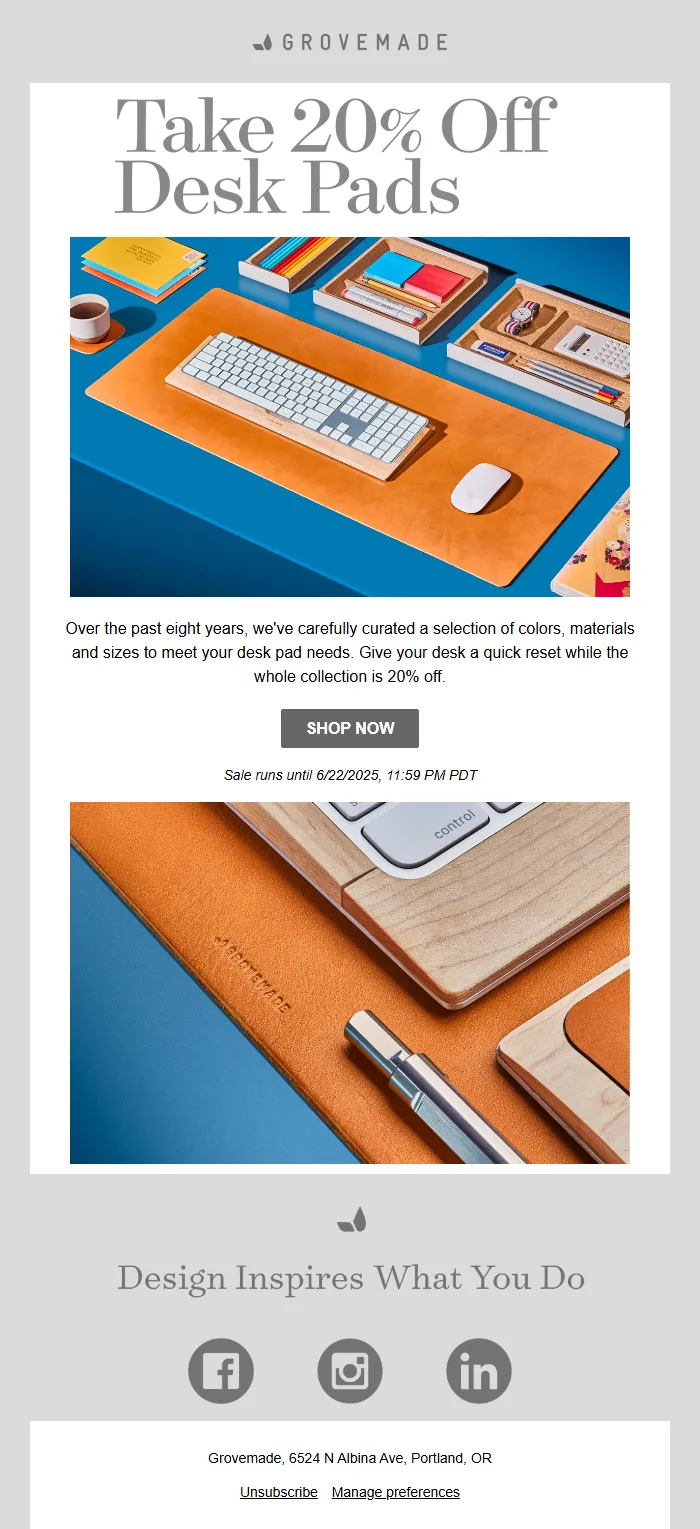 Anniversary Sale Email – 20% Off Desk Pads & Accessories