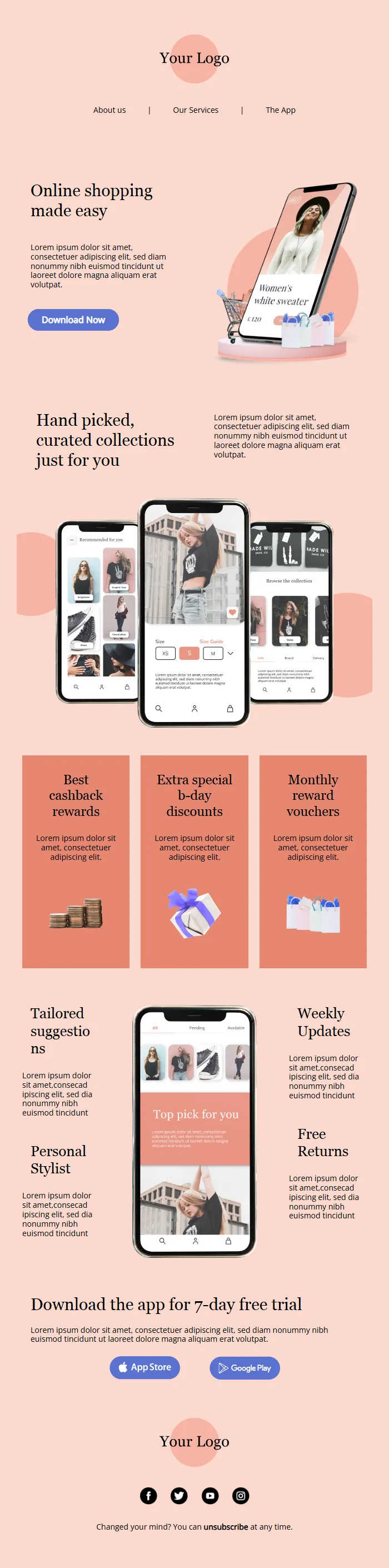 Layouts follow best-practice email design standards proven to boost engagement and conversion rates.