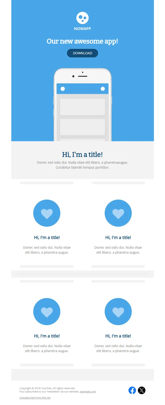 Layouts follow best-practice email design standards proven to boost engagement and conversion rates.