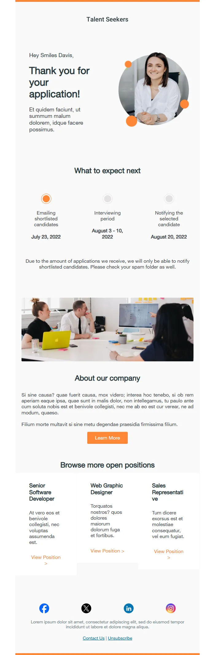 Job Application Confirmation – Thank You Email