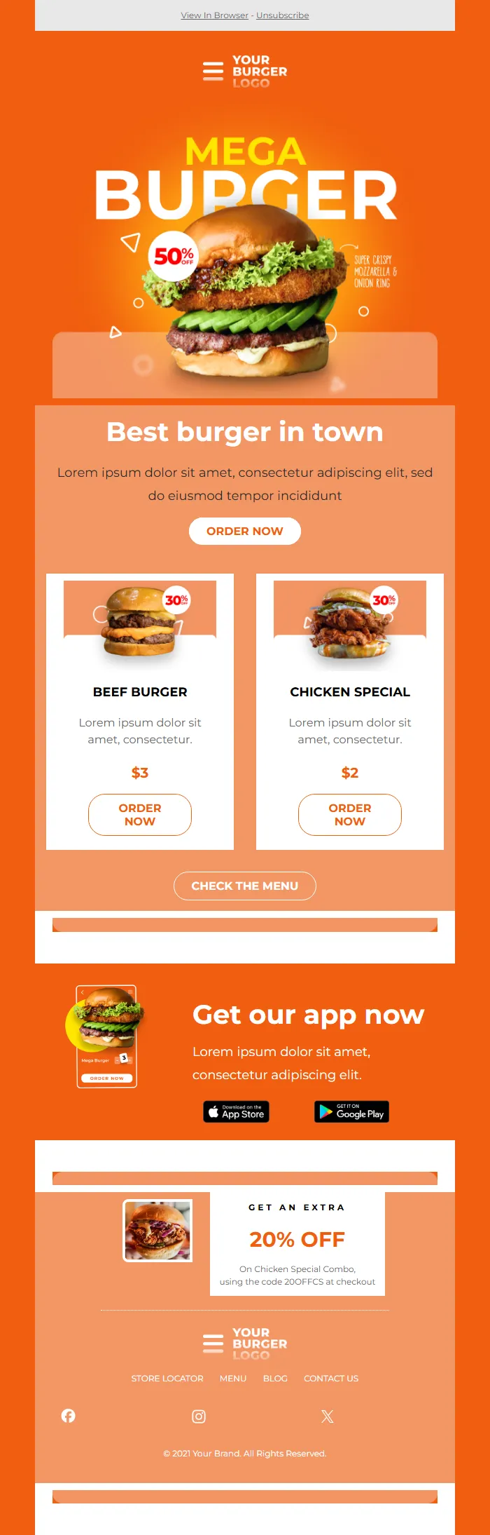 Restaurant & Food Promotion Email – Burger Menu & Orders