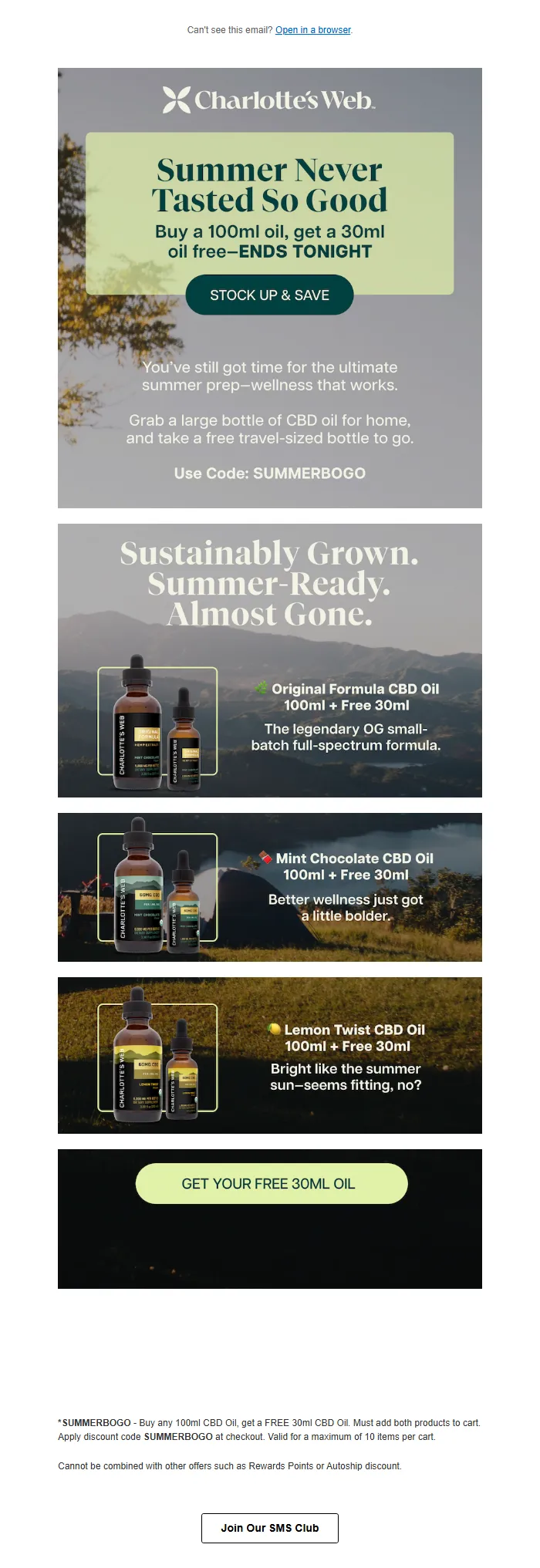 CBD Oil BOGO Sale Email – Summer Wellness & Free Product Offer