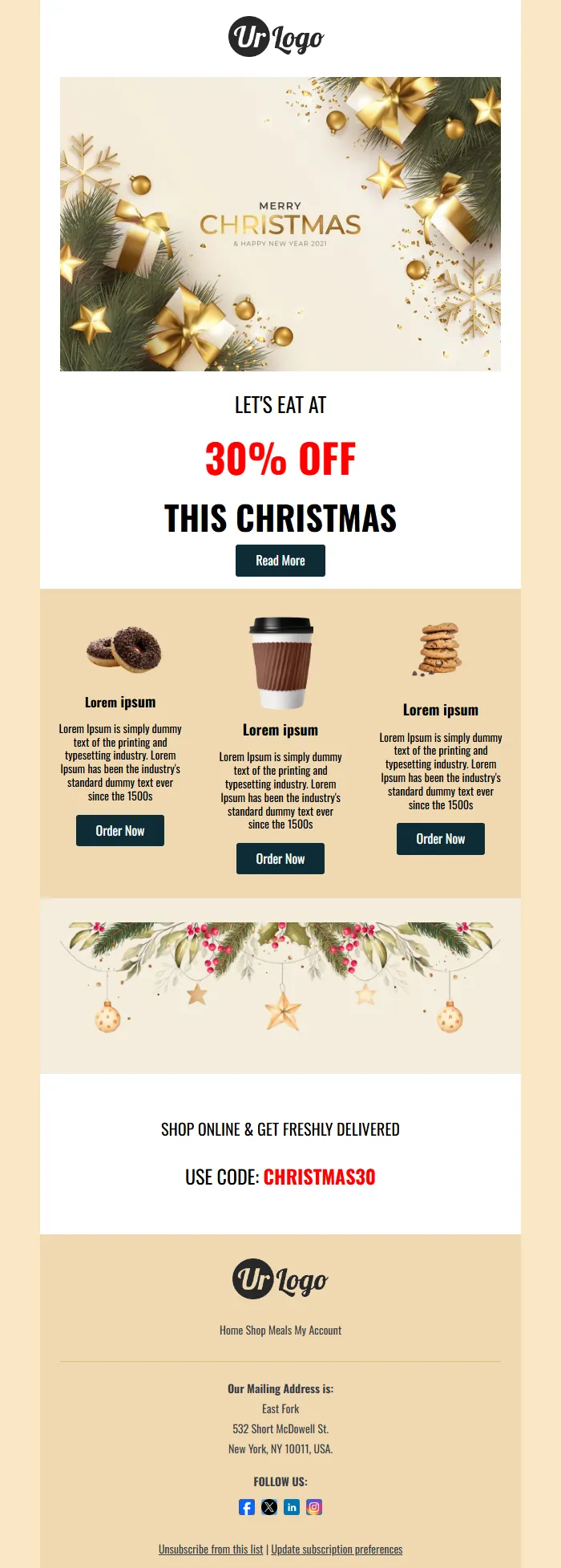Christmas Promotion Email – 30% Off Holiday Deals