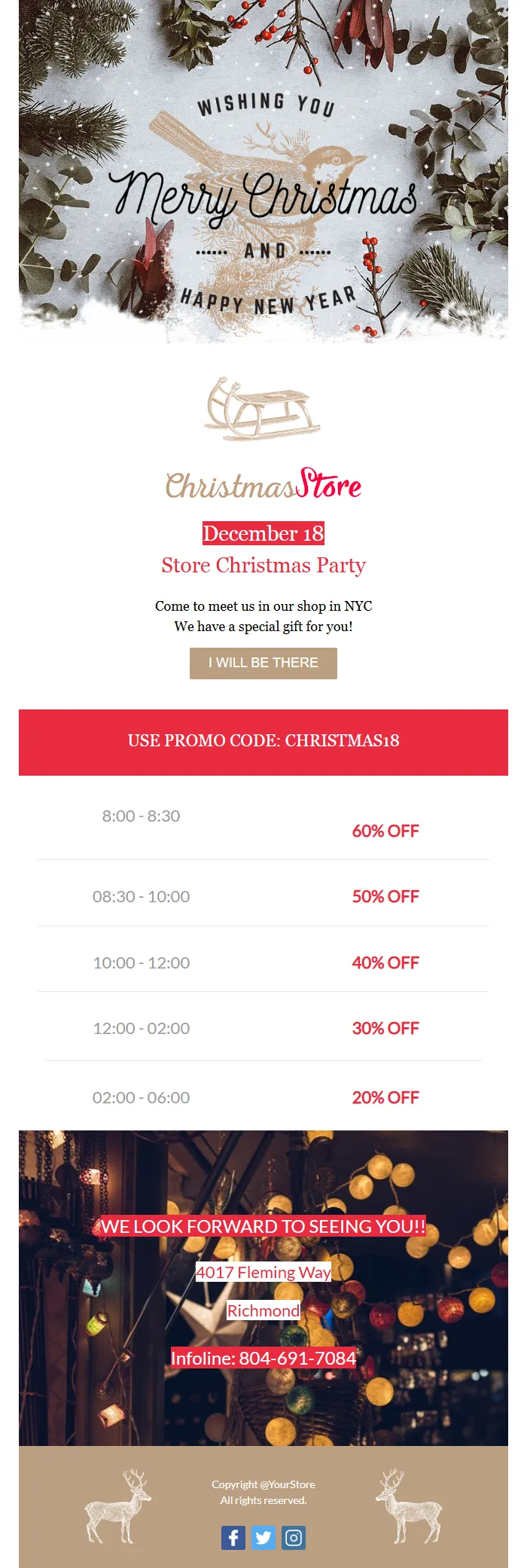 Store Christmas Party – Event Invitation & Tiered Discounts