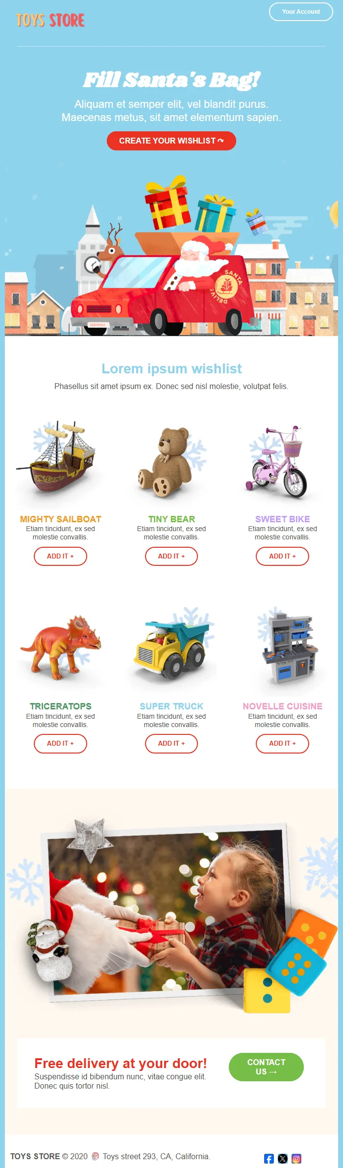 Christmas Toys Wishlist Email – Fill Santa's Bag