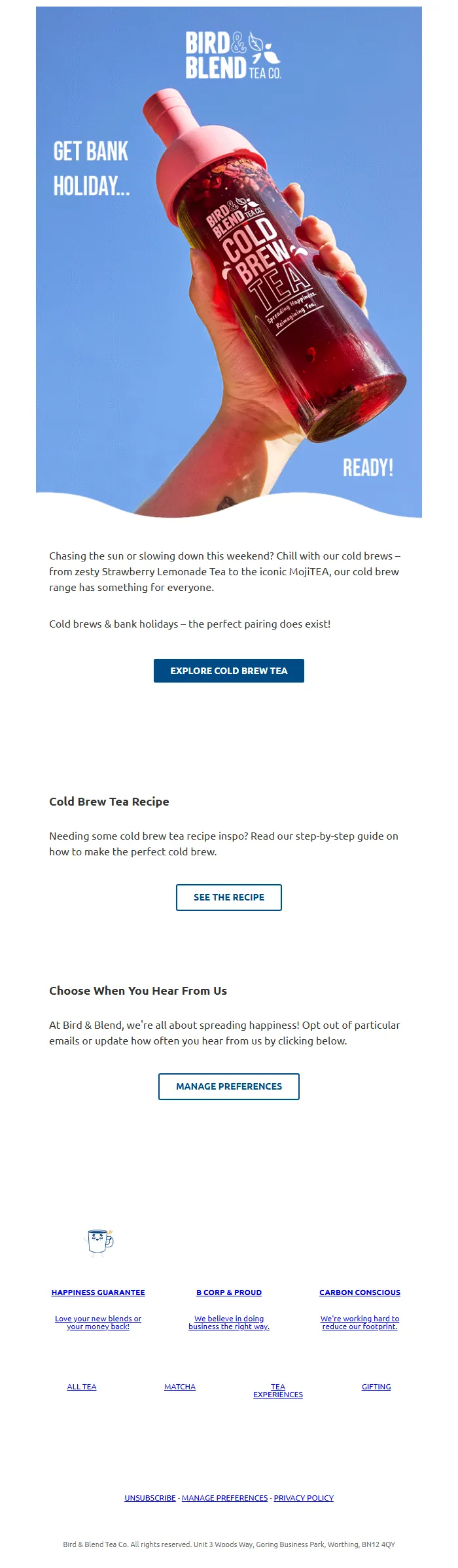 Cold Brew Tea Email – Bank Holiday Seasonal Campaign