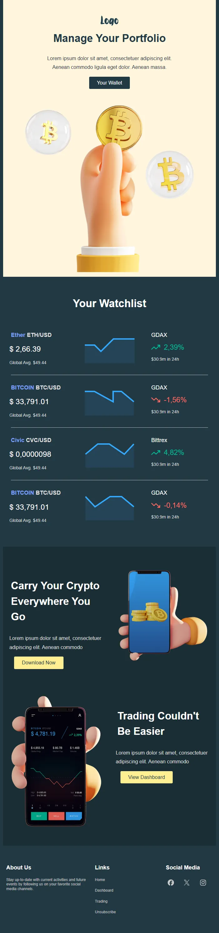 Crypto Portfolio & Watchlist Email – Monthly Performance Report