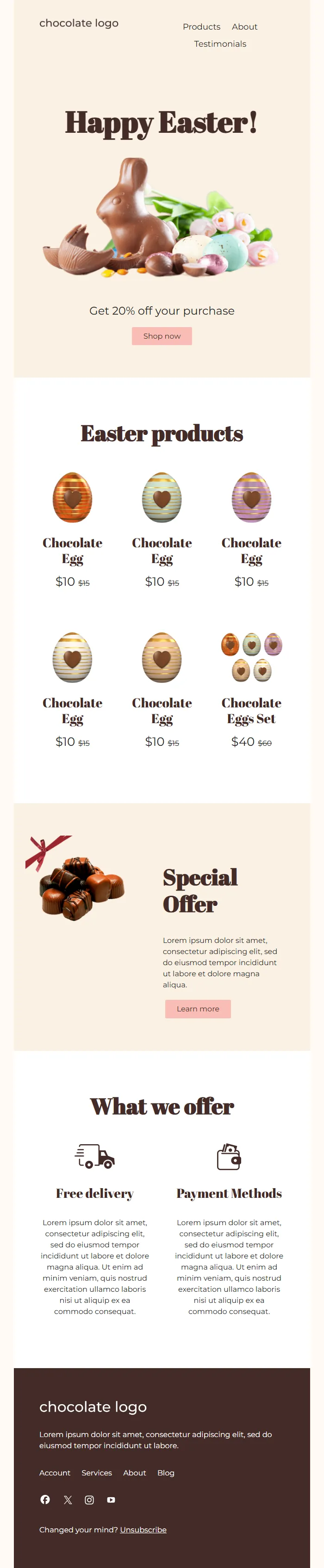 Easter Email – Chocolate Products & Spring Seasonal Promotions