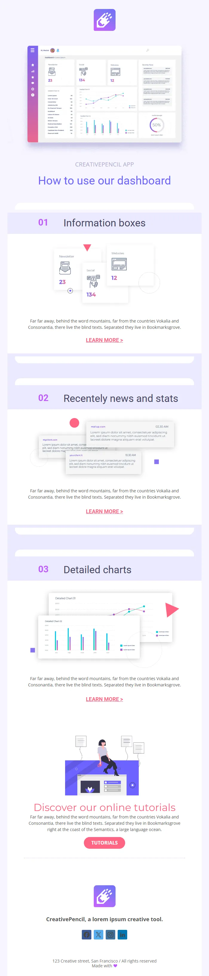 Product Features Discovery Email – Dashboard & Tutorials Guide