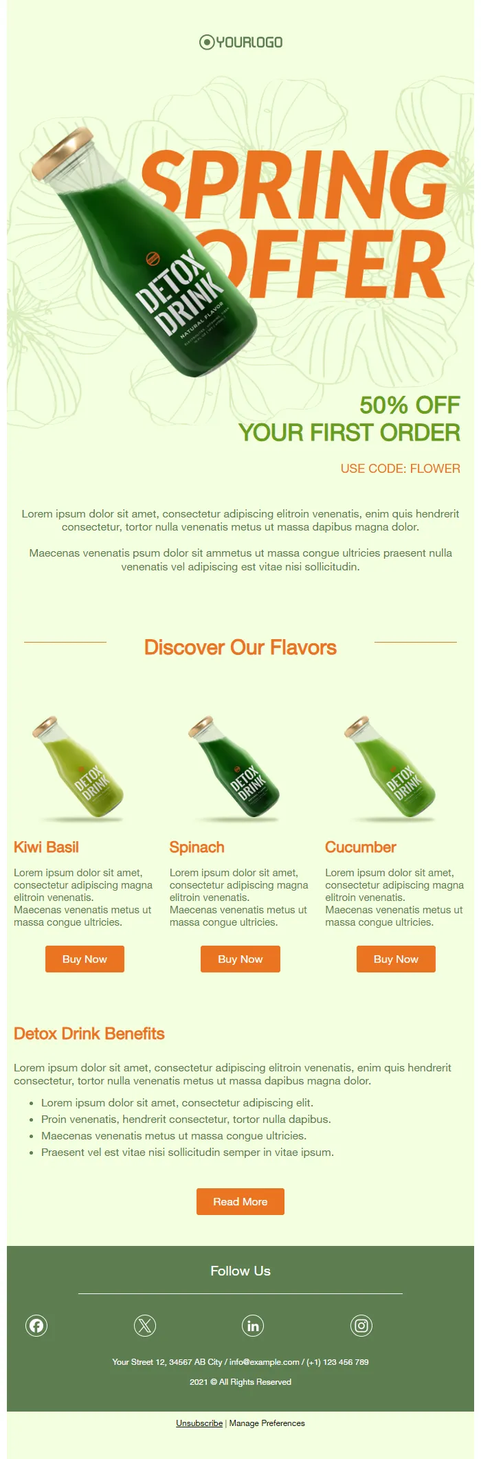 Spring Offer Email – Fresh Detox Drinks & 50% Off