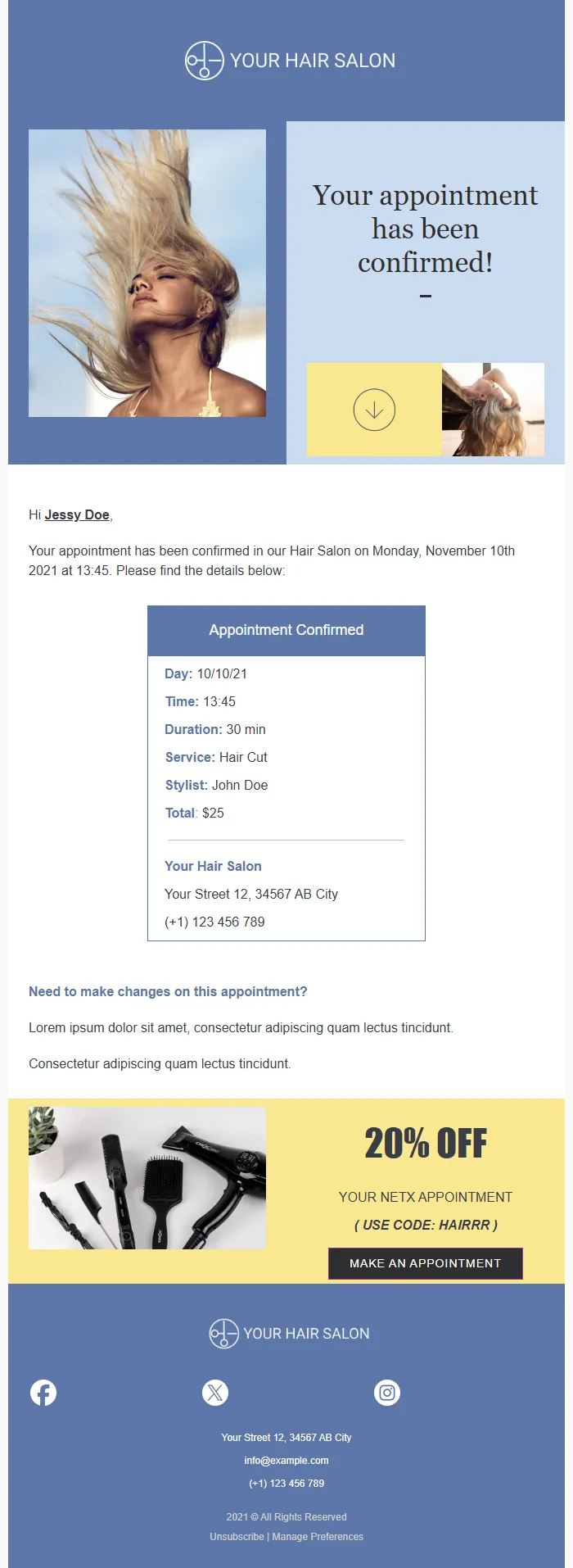Hair Salon Appointment Confirmation – Booking Details & Service Info