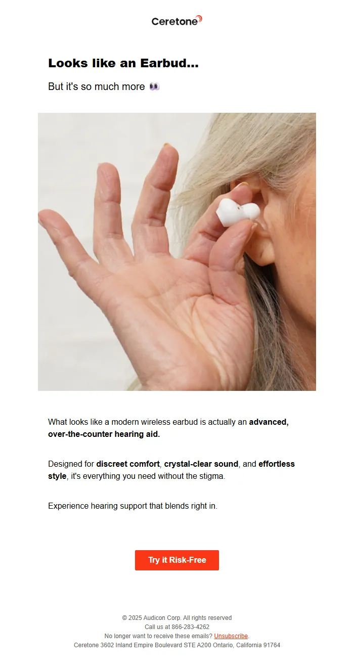 Hearing Aid Product Email – Discreet OTC Solution & Features