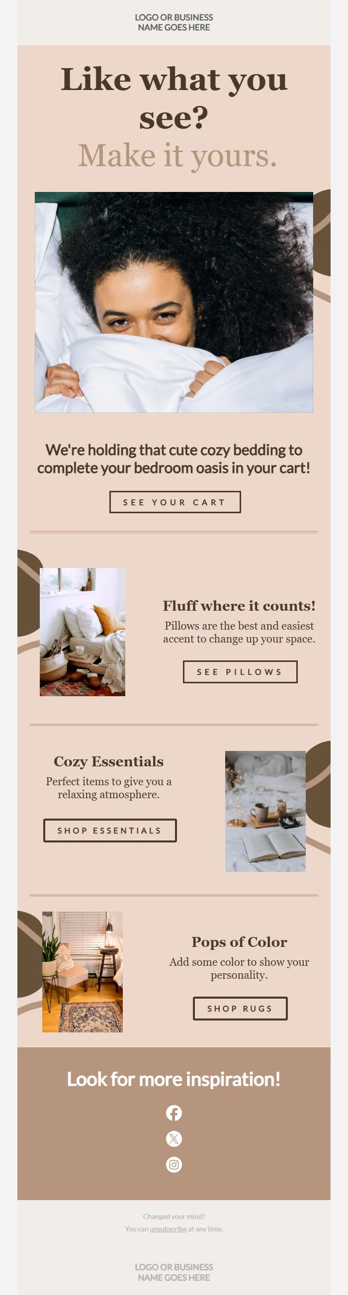 Home Goods & Cozy Essentials Email – Abandoned Cart & Product Showcase
