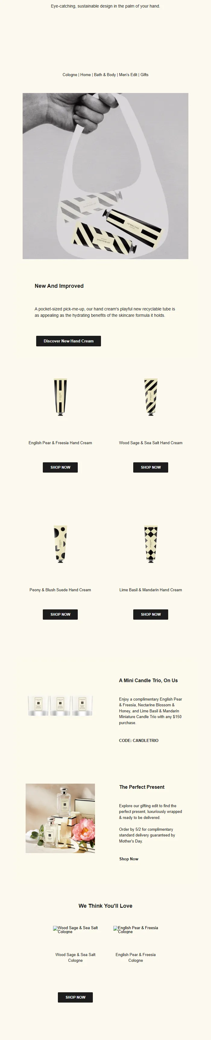 Jo Malone Hand Cream Email – New & Improved Product Launch