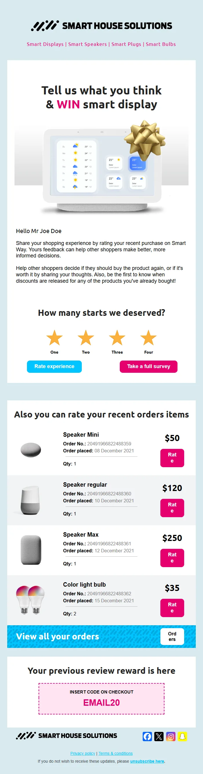 Product Review & Rating Email – Customer Feedback & Surveys