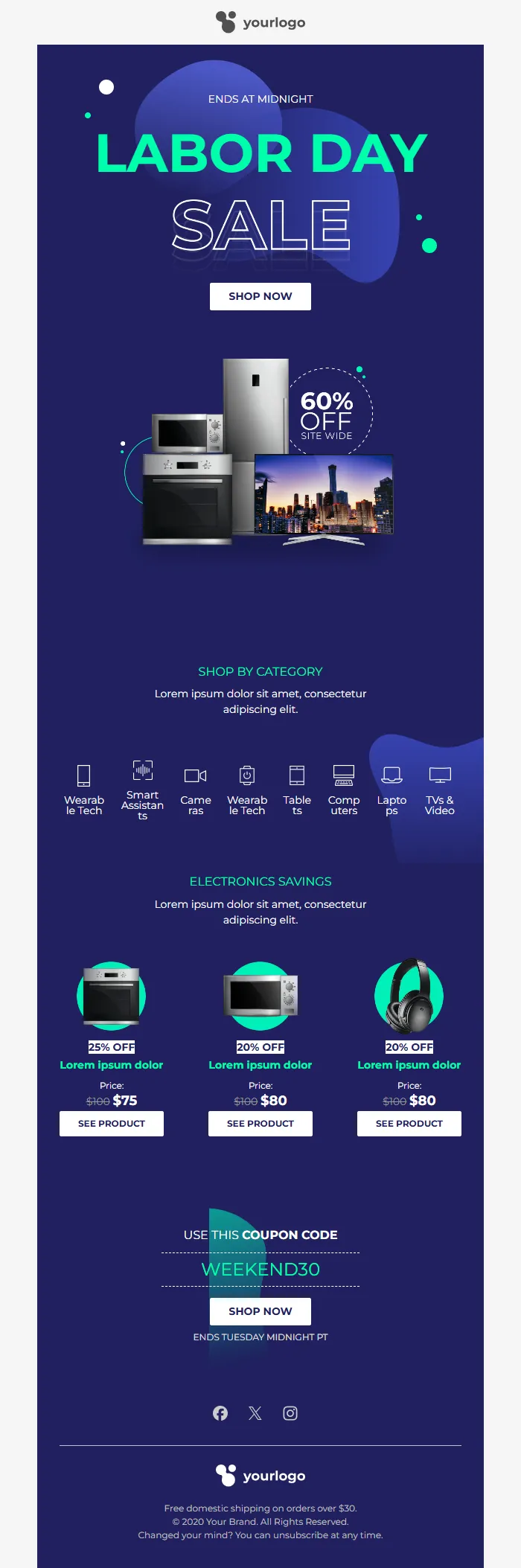 Layouts follow best-practice email design standards proven to boost engagement and conversion rates.