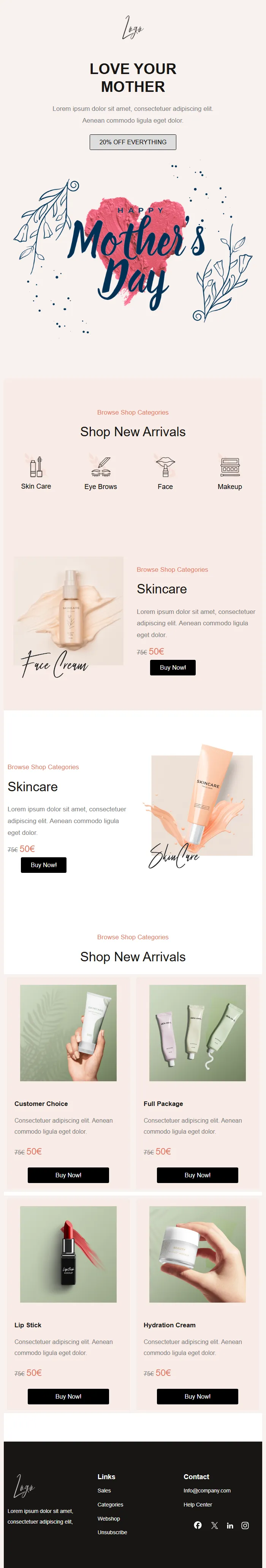 Mother's Day Beauty & Skincare Email – Product Showcase & Seasonal Sale