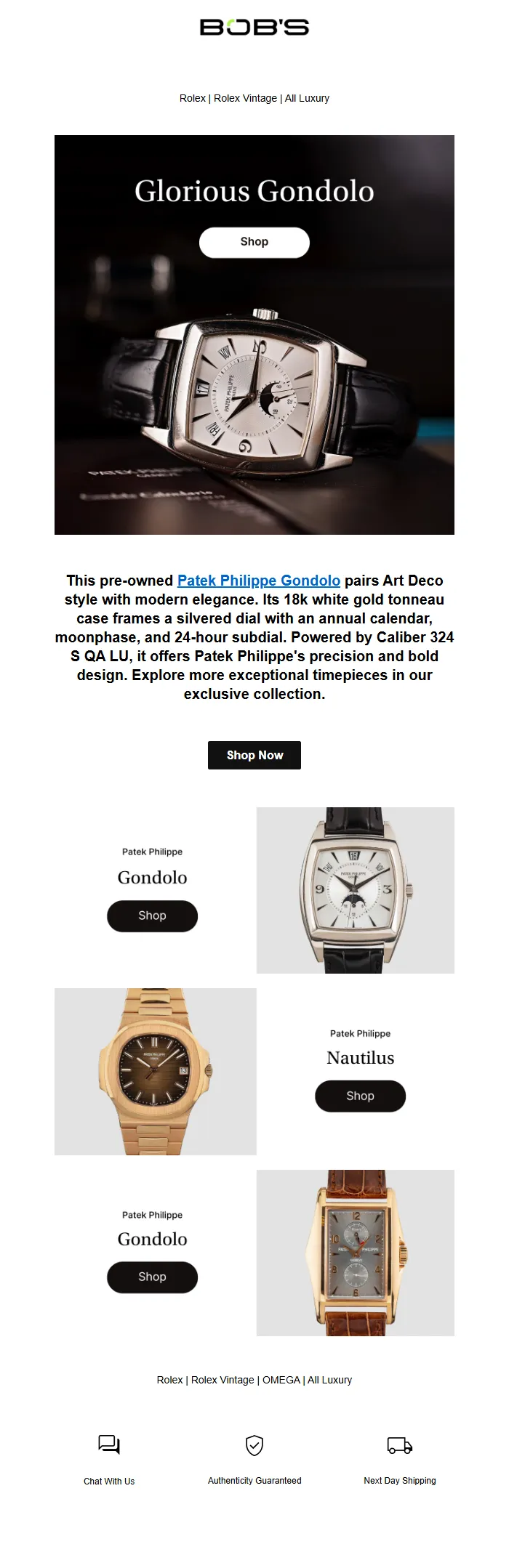 Luxury Watch Product Showcase – Pre-Owned Patek Philippe Email