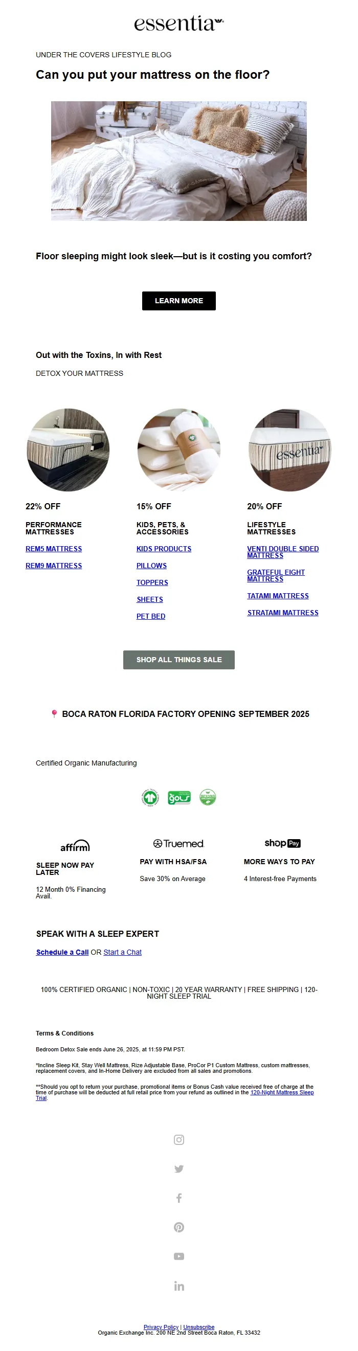 Mattress & Sleep Products Email – Floor Sleeping Tips & Big Savings