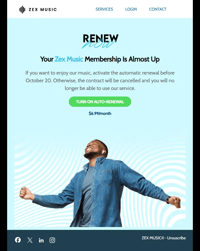 Membership Renewal – Music Service Auto-Renewal Reminder