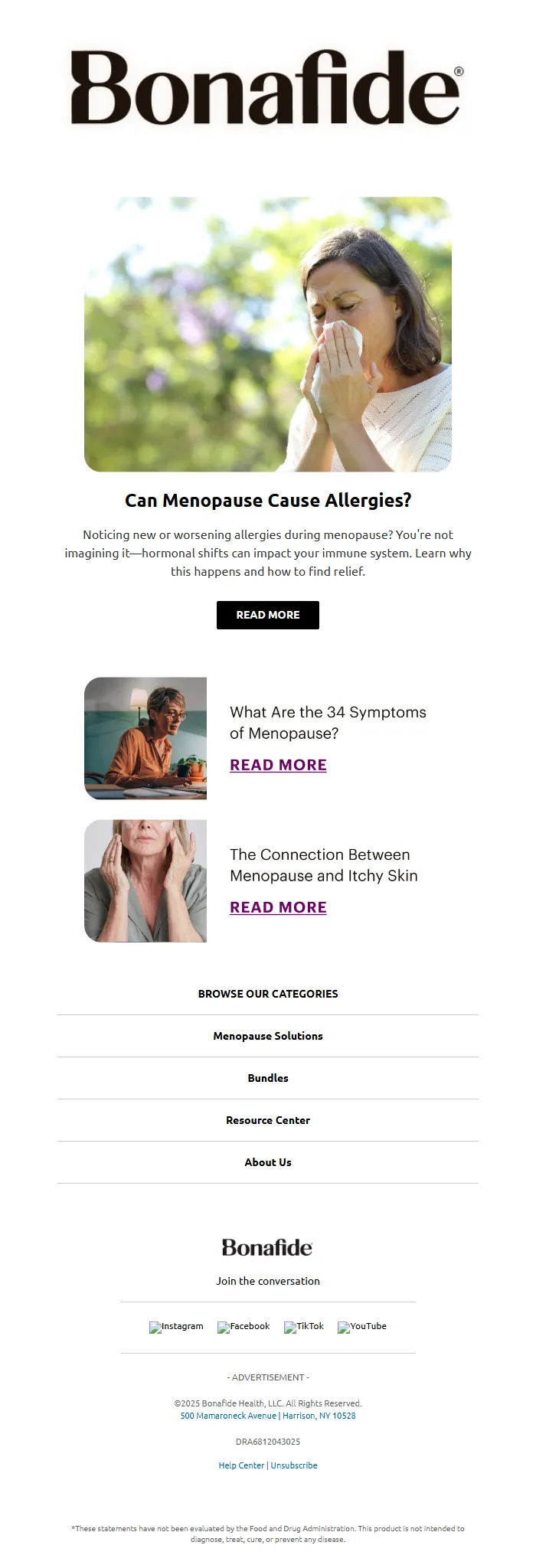 Menopause & Allergies Health Email – Symptoms & Solutions
