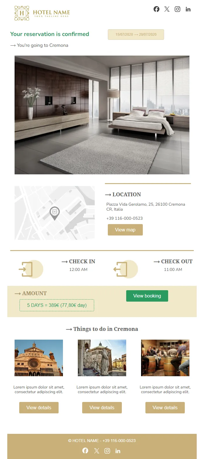 Hotel Room Reservation Confirmation – Booking Details & Itinerary