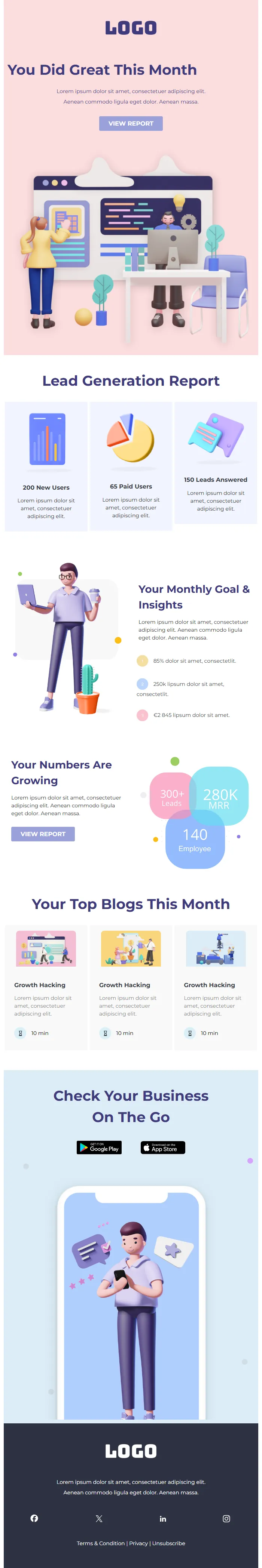 Layouts follow best-practice email design standards proven to boost engagement and conversion rates.