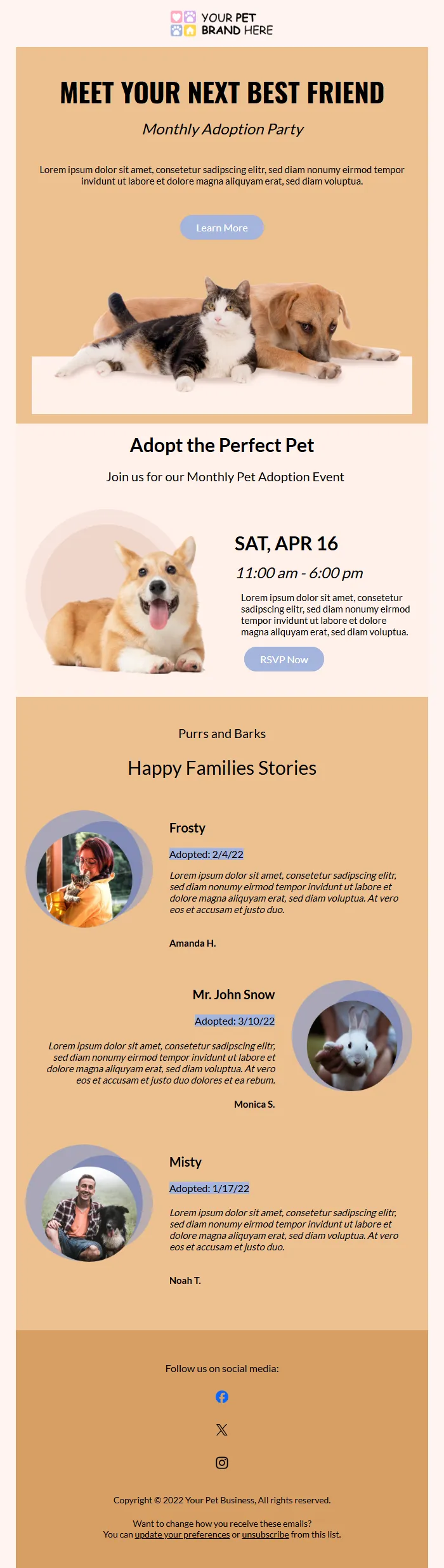 Pet Adoption Event Email – Monthly Adoption Party & RSVP