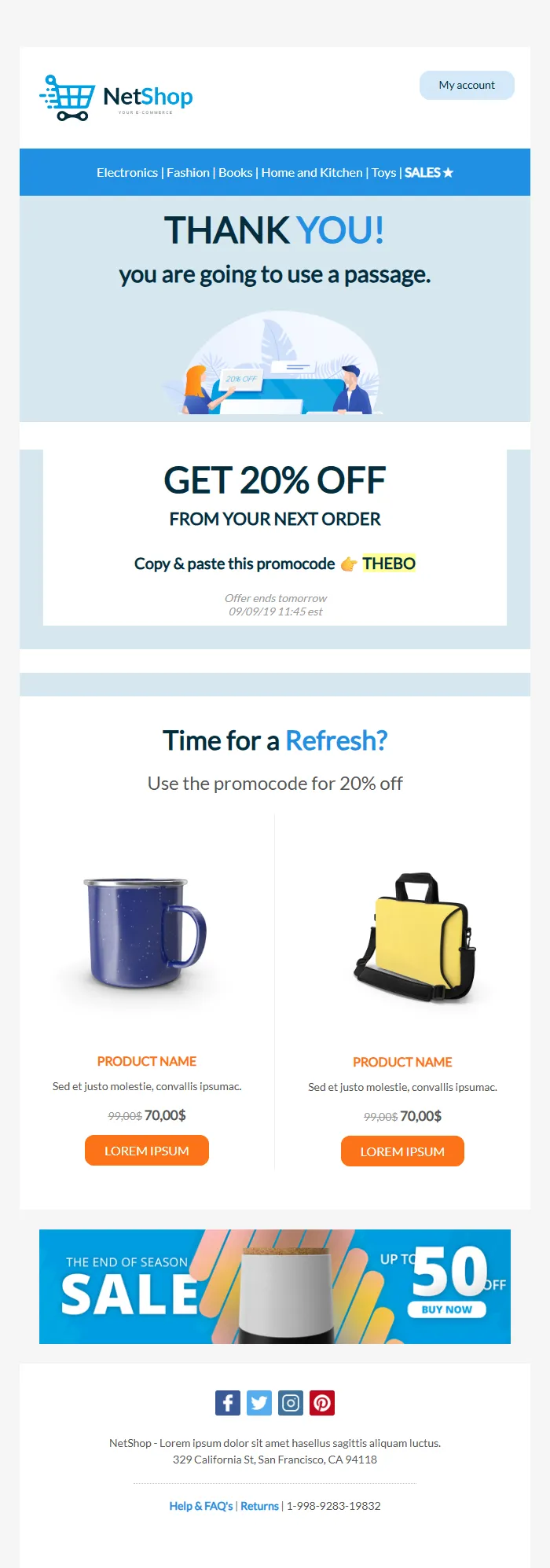 Thank You & Promo Code Email – Post-Purchase Offer