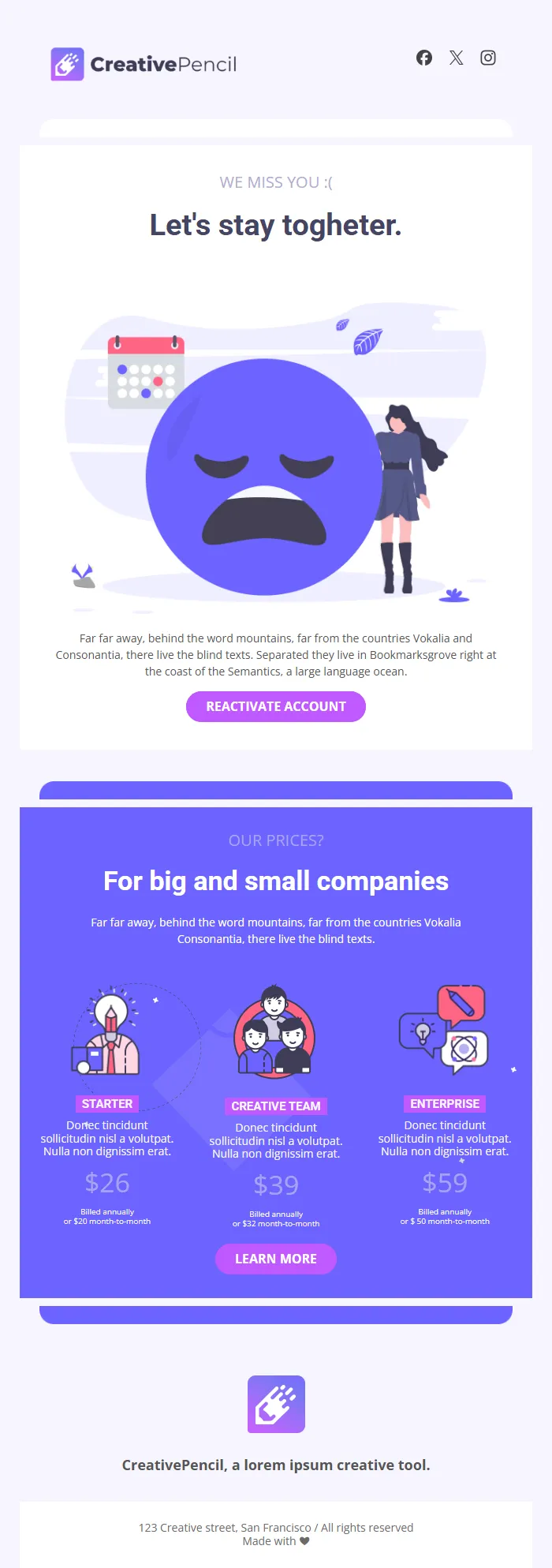 Layouts follow best-practice email design standards proven to boost engagement and conversion rates.