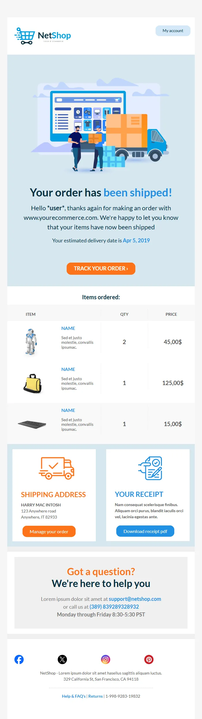 Order Shipped – Shipping Confirmation & Tracking