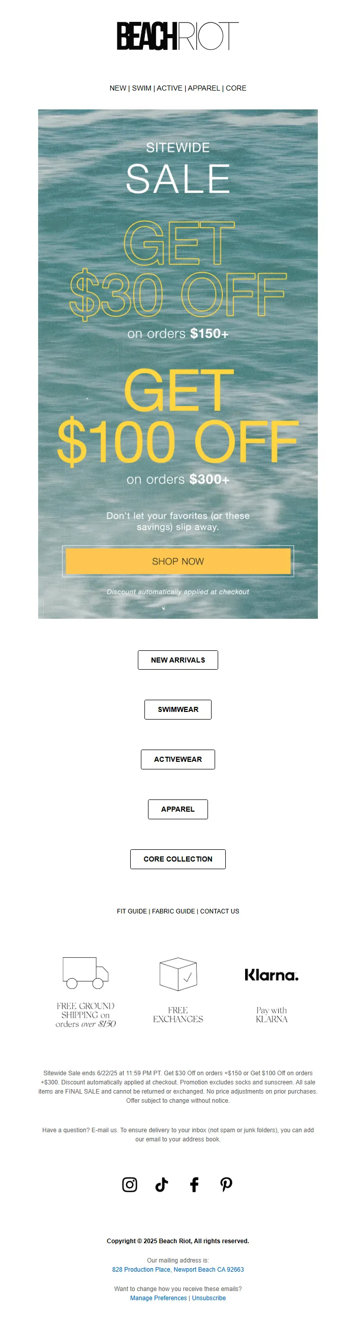 Sitewide Sale Email – Discount Offers & Product Categories