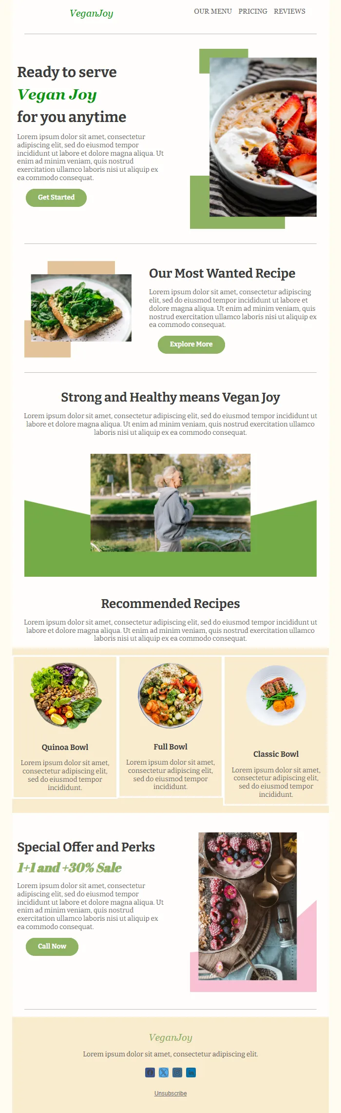 Vegan Restaurant & Recipe Email – Menus, Recipes & Special Offers