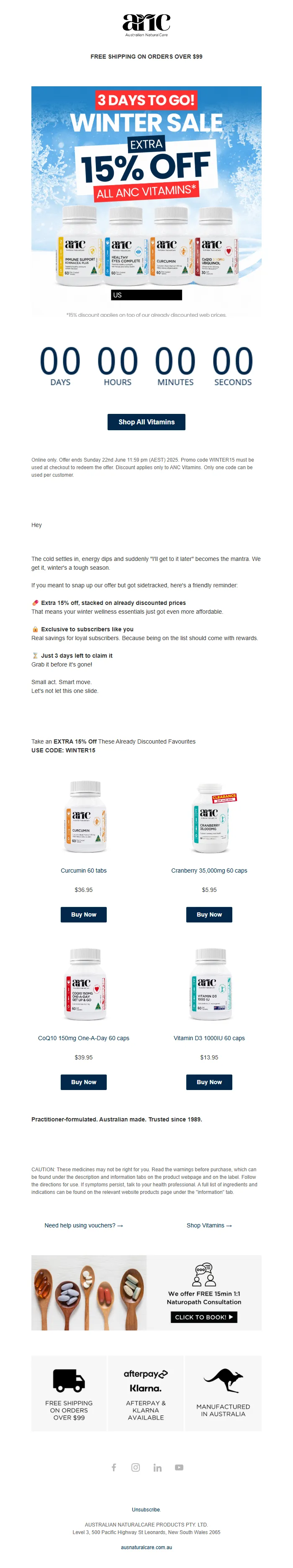Winter Wellness Voucher Email – 3 Days to Get Extra 15% Off Vitamins