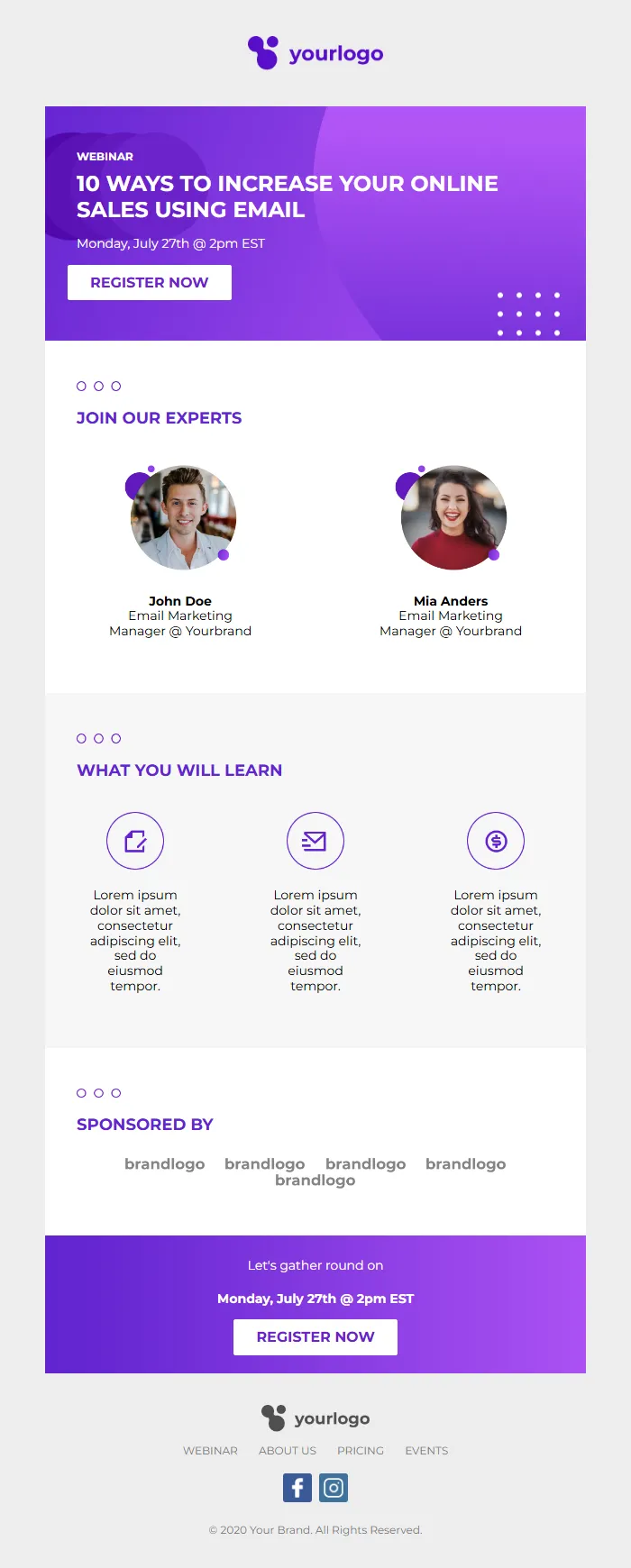 Layouts follow best-practice email design standards proven to boost engagement and conversion rates.