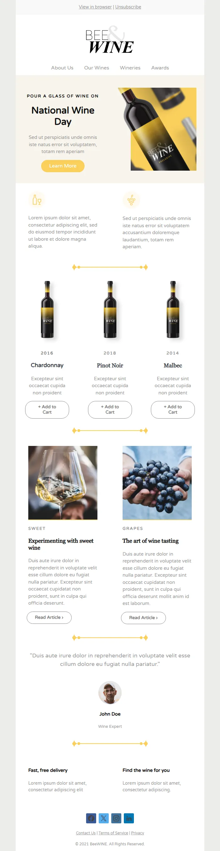 Wine & National Wine Day Email – Products & Tastings